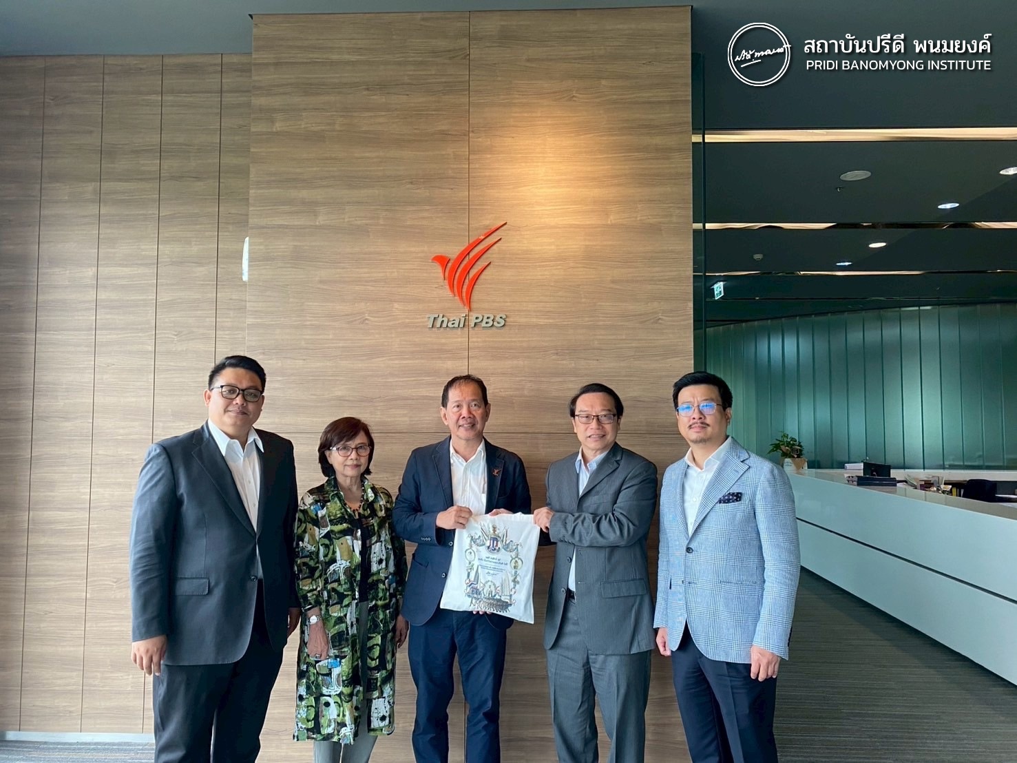 (วานนี้) วันที่ 3 ตุลาคม 2568 เวลา 10.00-11.30 น. ณ ห้องประชุม ชั้น 4 อาคาร A สำนักงานใหญ่องค์การกระจายเสียงและเผยแพร่ภาพสาธารณะแห่งประเทศไทย (ส.ส.ท.) หรือ Thai PBS ผู้แทนจากสถาบันปรีดี พนมยงค์ นำโดย รศ. ดร.อนุสรณ์ ธรรมใจ ประธานกรรมการบริหารสถาบันปรีดี พนมยงค์ พร้อมด้วย คุณปรีดิวิชญ์ พนมยงค์ กรรมการผู้จัดการ และกรรมการบริหารสถาบันปรีดี พนมยงค์ ผศ. อัครพงษ์ ค่ำคูณ กรรมการบริหาร คุณนิธินันท์ ยอแสงรัตน์ กรรมการบริหารสถาบันปรีดี พนมยงค์ และพร้อมด้วยเจ้าหน้าที่ประจำสถาบันปรีดี พนมยงค์ ได้เข้าพบคุณวันชัย ตันติวิทยาพิทักษ์ โดยการเข้าพบครั้งนี้มีวัตถุประสงค์เพื่อแสดงความยินดีในโอกาสเข้ารับตำแหน่งผู้อำนวยการองค์การกระจายเสียงและเผยแพร่ภาพสาธารณะแห่งประเทศไทย หรือ ส.ส.ท. และเพื่อหารือเกี่ยวกับแนวทางในการสร้างความร่วมมือระหว่างสถาบันฯ และสถานีโทรทัศน์ Thai PBS เพื่อส่งเสริมความรู้เชิงประวัติศาสตร์การอภิวัฒน์สยาม คณะราษฎร ขบวนการเสรีไทย และประชาธิปไตยต่อไปในอนาคต