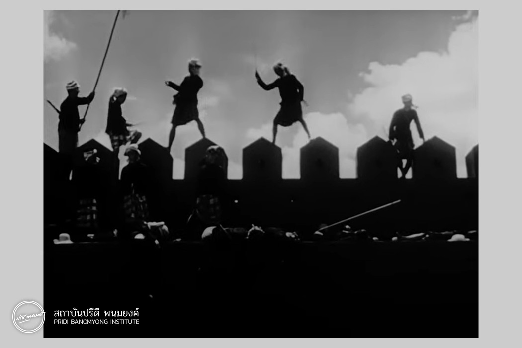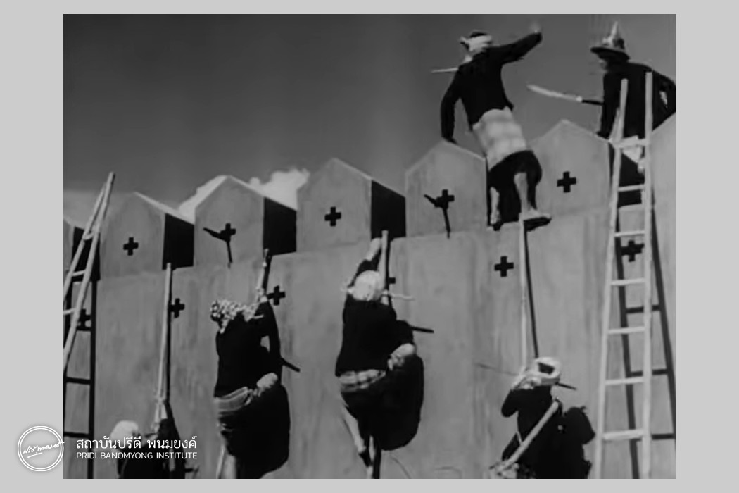 แต่มีบันไดมากมายเข้ามาอีก บันไดดูจะเคลื่อนไหวได้ ด้วยฝูงทหารที่ปีนกันขึ้นมา คนแรกถูกหอกแทงตกลงไป …คนที่สองขึ้นมาจับหอกไว้ทัน …คนที่สามถือโอกาสที่คนอื่นกำลังต่อสู้กันกระโดดขึ้นมาบนกำแพง