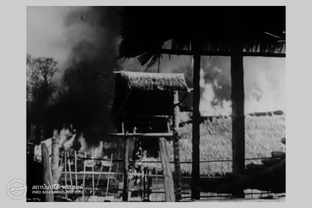 ไม้ไผ่ที่ใช้สร้างบ้านตกเป็นเหยื่อพระเพลิงอย่างง่ายดาย ไม้แห้งเพราะฝนแล้งมานาน ทำให้เกิดเสียงดังเพียะพะ และไม่ช้าไม่นานบ้านก็กลายเป็นเพลิงกองมหึมา