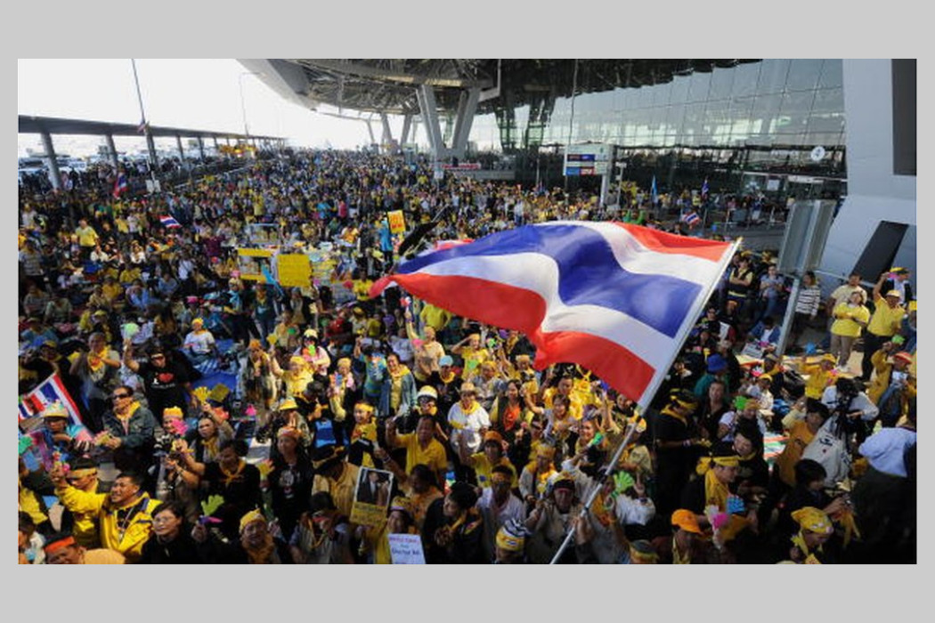 กลุ่มพันธมิตรประชาชนประชาธิปไตย บุกยึดสนามบินสุวรรณภูมิเมื่อวันที่ 25 พฤศจิกายน พ.ศ. 2551