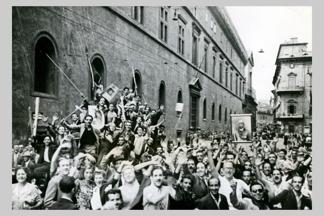การเดินขบวนเฉลิมฉลองในกรุงโรมหลังจากการโค่นล้มรัฐบาลเผด็จการมุสโสลินี พ.ศ. 2488