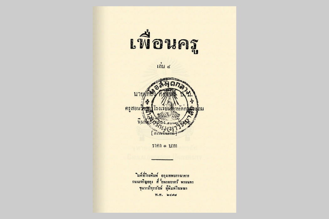 หนังสือ “เพื่อนครู” หนึ่งในห้าเล่ม โดย เตียง ศิริขันธ์ สำหรับใช้ในการเตรียมสอบวิชาชุดประโยคครูประถมและครูมัธยม