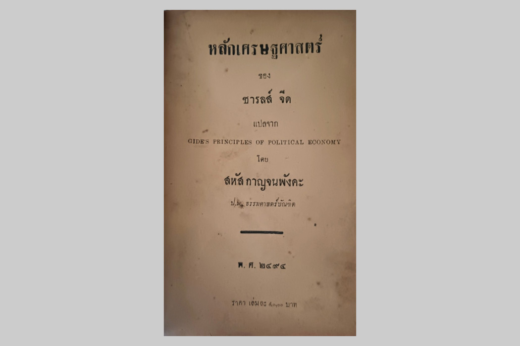 หนังสือ หลักเศรษฐศาสตร์ของชาร์ลส์ จิ๊ด แปลโดย สหัส กาญจนพังคะ ฉบับพิมพ์ปี พ.ศ. 2494