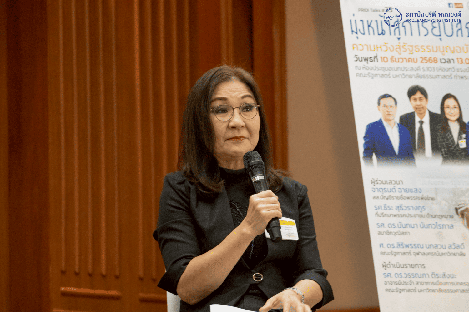ดิฉันรีบออกมาจากสภาหลังจากที่ลงมติในวาระที่สอง มาตรา 256/1 ใจสลายค่ะ จะบอกกับทุกท่านว่าเราหมดหวัง รัฐธรรมนูญฉบับประชาชนไม่มีอยู่จริง ดิฉันออกมาจากห้องประชุมด้วยความรู้สึกหมด เพราะว่าเขาลงมติตามกรรมาธิการเสียงข้างมากที่ อ. ธีระ คงทราบ ร่างของคุณพริษฐ์กำหนดเอาไว้ว่า จะให้มี สสร. ซึ่งไม่ได้คำนั้น ใช้คำว่า คณะผู้ร่าง แล้วก็คณะที่ปรึกษา