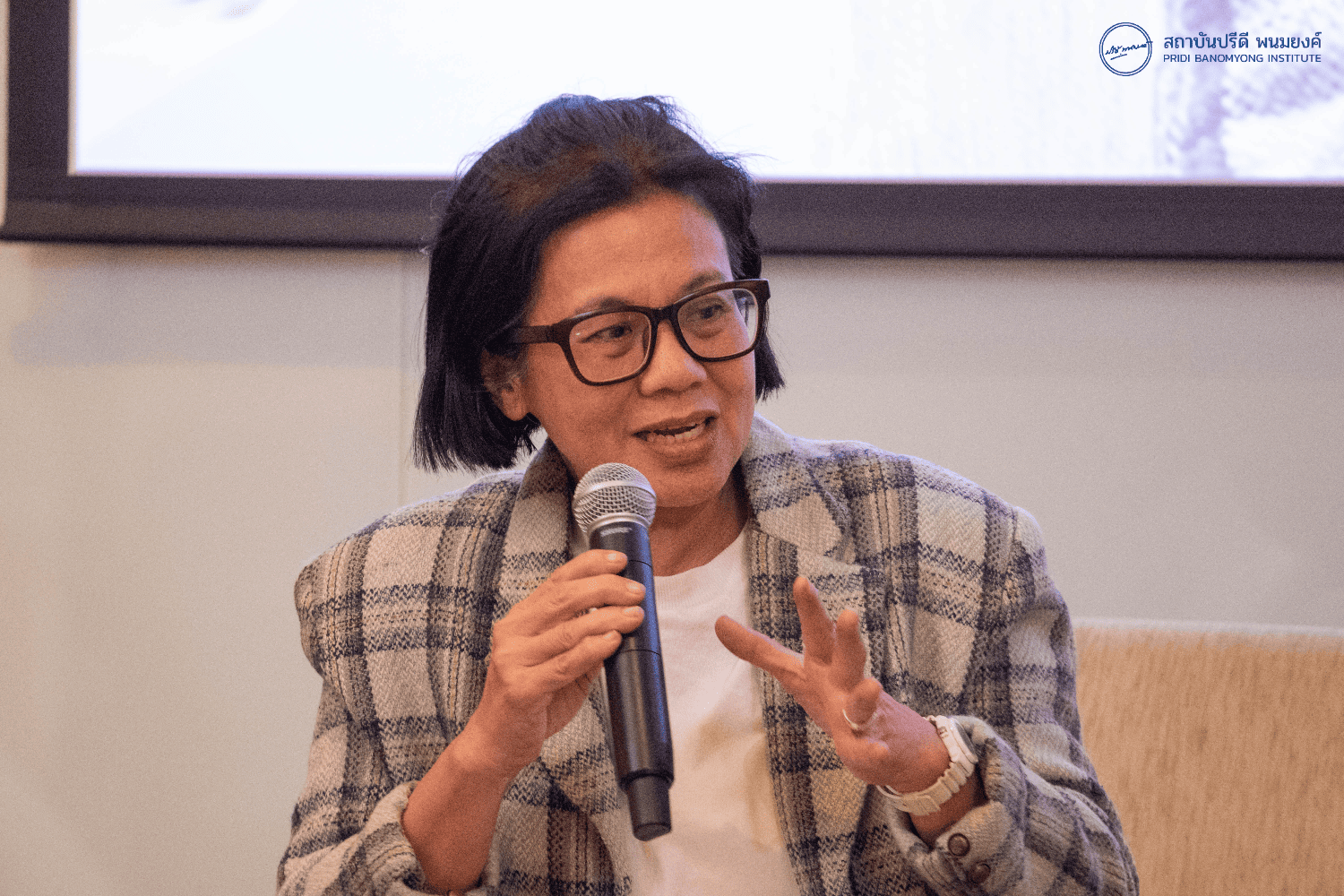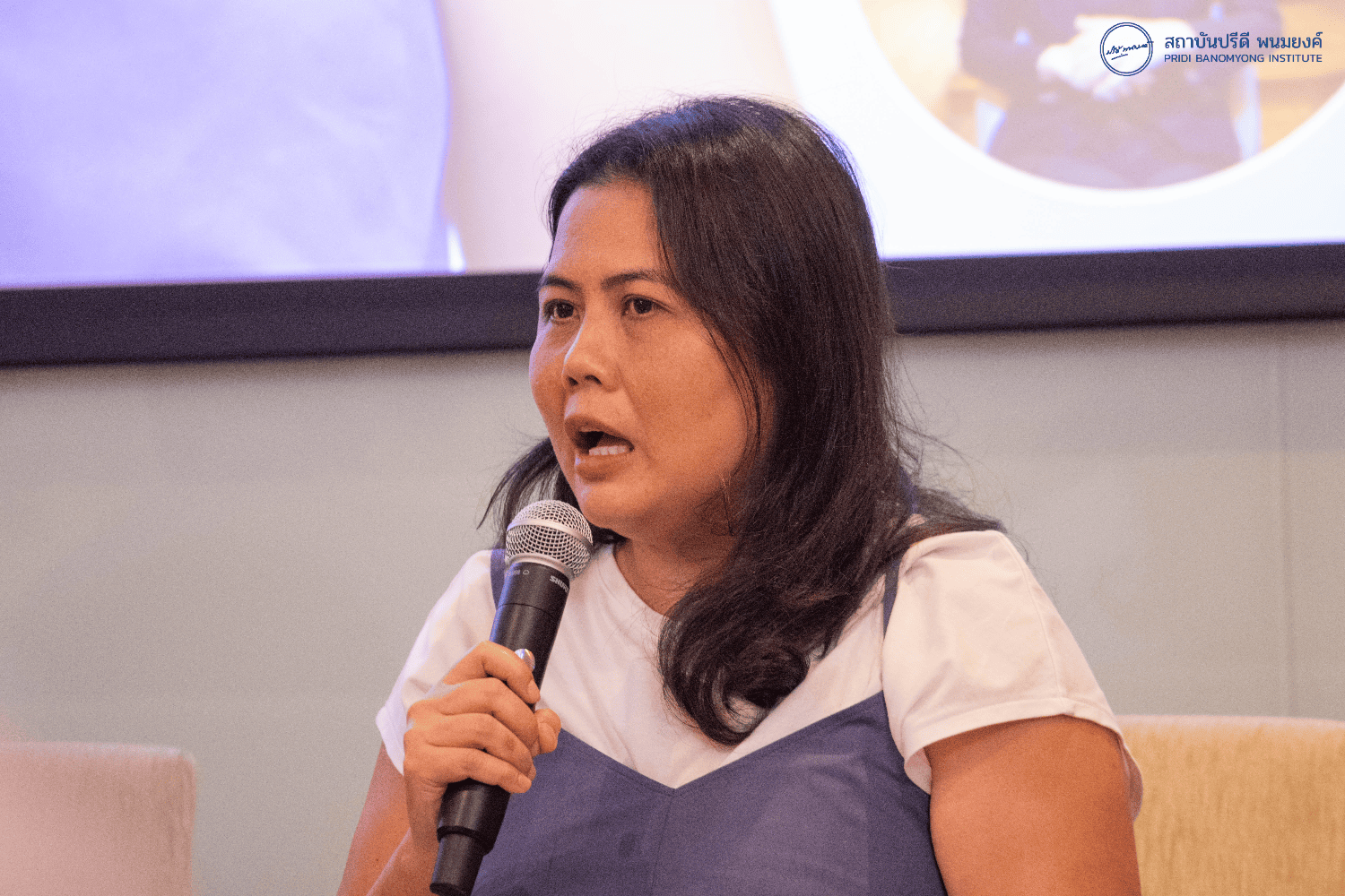 พอดี อ. เล็กยื่นไมค์ให้ดิฉัน สิ่งที่สามารถตอบได้คือคำถามว่า จะมีข้อแนะนำอะไร พอคุณวราพูดว่านึกไม่ออกว่าจะมีเคสไหนที่พอเชื่อมโยงกับท่านผู้หญิงพูนศุขใช่ไหมคะ แต่ดิฉันนึกออกเยอะมาก ๆ เลยค่ะ เพราะด้วยความที่ท่านทำหน้าที่ต้องดูแลครอบครัวดูแลลูก ดิฉันนึกถึงบทบาทผู้หญิงหลายคน