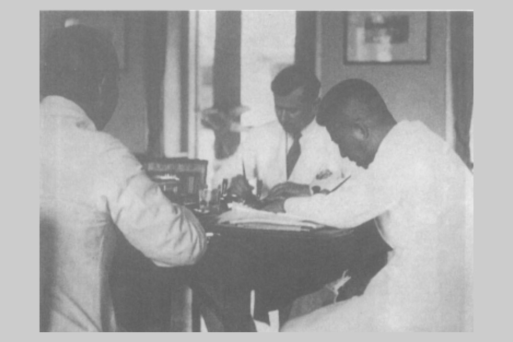 ปรีดี พนมยงค์ ขณะดำรงตำแหน่งรัฐมนตรีว่าการกระทรวงต่างประเทศ ลงนามสนธิสัญญาไมตรีกับประเทศฝรั่งเศส ปี พ.ศ. 2480