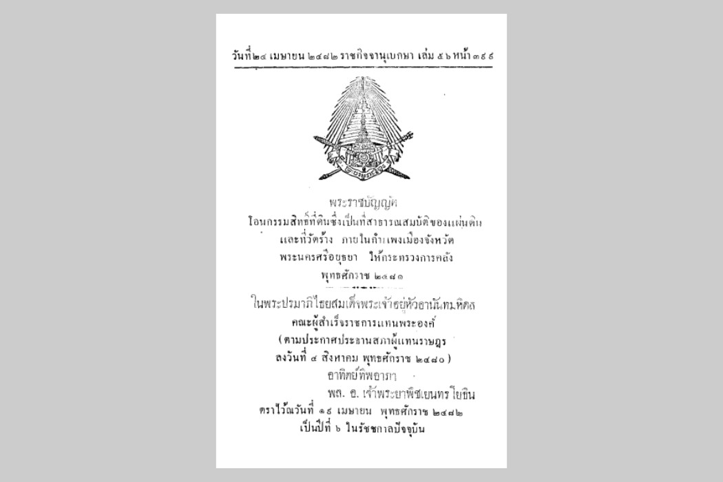 (3) พระราชบัญญัติโอนกรรมสิทธิ์ที่ดินเกาะเมืองอยุธยาให้กระทรวงการคลัง